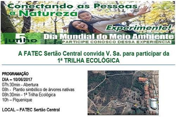 A Faculdade de Tecnologia do Sertão Central (FATEC-Centec) realizará neste sábado, 10 de junho, a primeira Trilha Ecológica, em comemoração a Semana Mundial do Meio Ambiente.