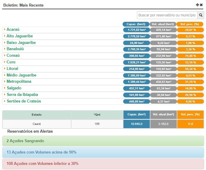 Confira a situação dos principais reservatórios do Estado
