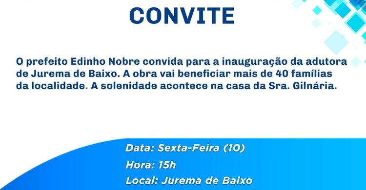 Nesta próxima sexta-feira, 10, o prefeito de Banabuiú, Edinho Nobre (PDT), inaugurará a adutora da localidade de Jurema de Baixo. A obra do equipamento estava parada há quase dois anos, mas, após solicitações do Governo Municipal, o serviço foi finalizado pela construtora.