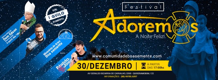No dia 30 de dezembro, a Comunidade Mariana Boa Semente realizará o Festival Adoremos para comemorar o nascimento do Menino Jesus e seu aniversário de fundação, que esse ano celebra 20 anos.