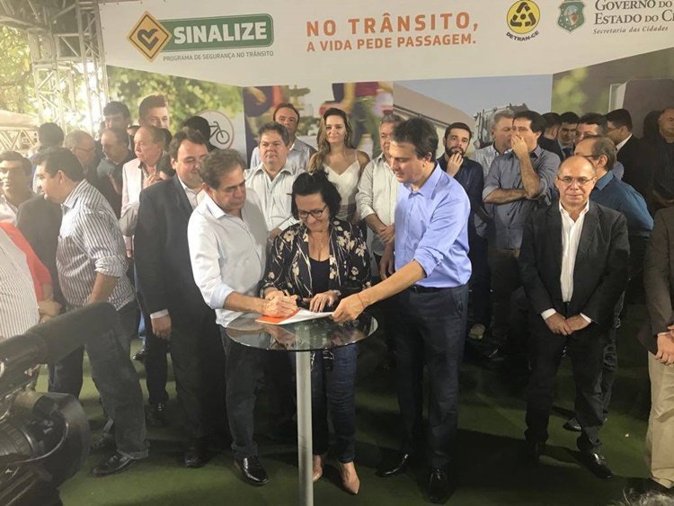 A prefeita de Canindé, Rozário Ximenes, assinou um termo de compromisso do Programa de Segurança no Trânsito – Sinalize, com o Governo do Estado, na presença do governador Camilo Santana, e do Presidente da Assembleia Legislativa, Zezinho Albuquerque.
