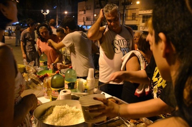Os voluntários são divididos em grupos e esses iniciam suas tarefas para a logística da ceia acontecer. Atividades recreativas com as crianças, organização da fila do jantar, são algumas das funções exercidas por eles, mas quando chega a hora de comer, todos os voluntários sentam juntam-se aos moradores de rua e na mesma mesa ceiam juntos. Este é o foco, compartilhar um momento, trocar experiência, ouvir a história desses anônimos, e não apenas servir uma comida para eles.