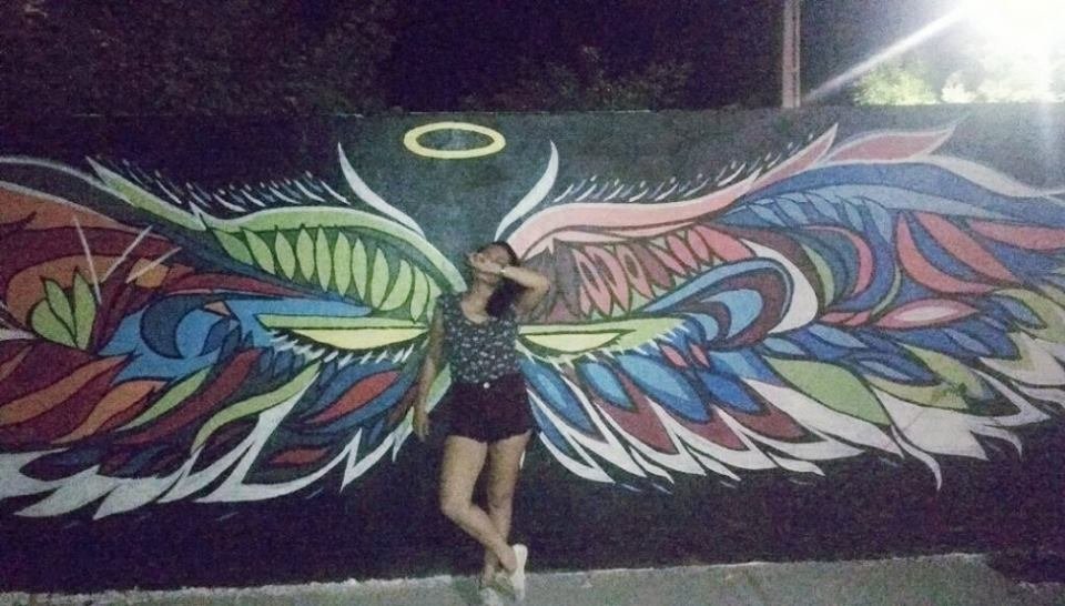 As asas do Conselheiro, pintadas no maior grafite de Quixeramobim e da região Sertão Central do Estado, continuam a receber pessoas para tirar fotos. Dessa vez, a pessoa acima é Nara Fernandes.