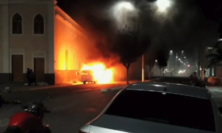 Veículo pega fogo próximo à igreja central de Quixadá e PM descarta ação criminosa
