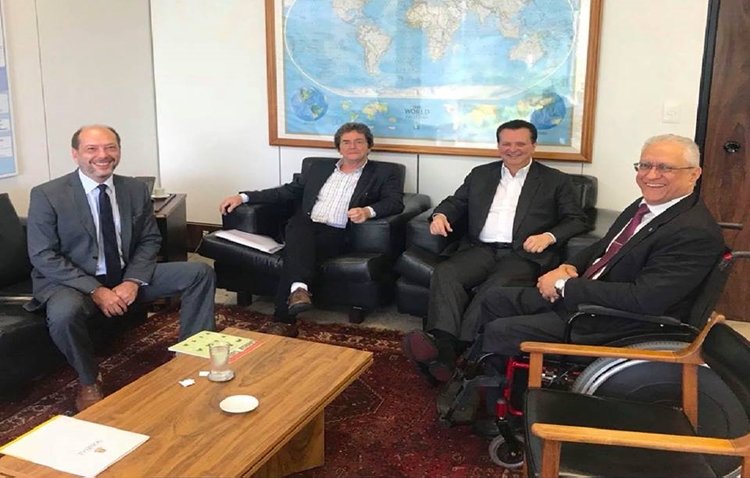 Cumprindo agenda nesta quinta-feira, 19, em Brasília, o prefeito Ivo Gomes se reuniu com o ministro da Ciência, Tecnologia, Inovações e Comunicações, Gilberto Kassab, com o presidente da Sociedade Brasileira para o Progresso da Ciência (SBPC), Ildeu de Castro, e com o presidente do Conselho Nacional de Desenvolvimento Científico e Tecnológico (CNPQ), Mário Borges, a quem pediu apoio para as comemorações e lançamento de um selo especial em homenagem ao centenário da comprovação da teoria da relatividade em Sobral.