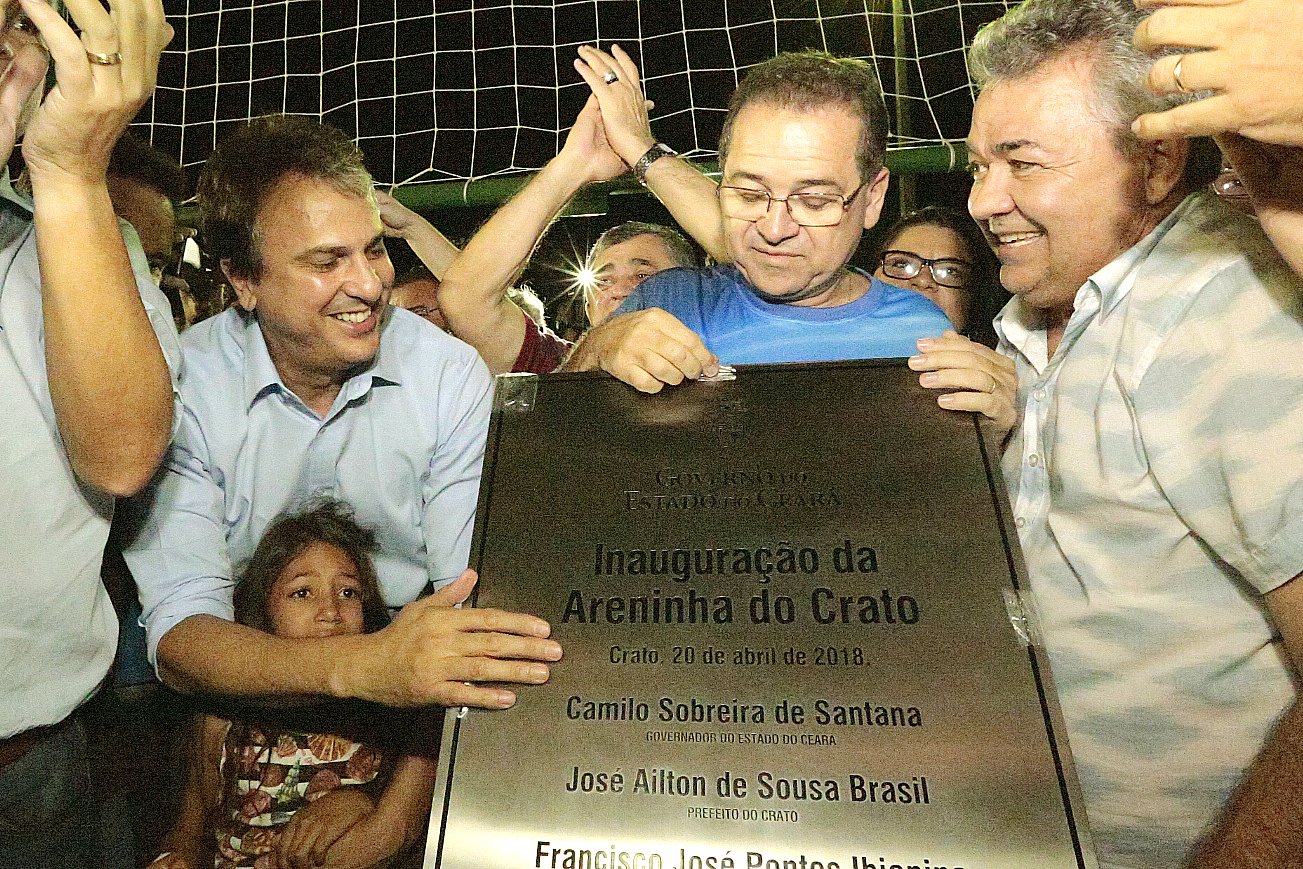 A primeira das 49 Areninhas que serão implantadas em 44 municípios cearenses foi inaugurada nesta sexta-feira (20), no município do Crato. O início das atividades do equipamento esportivo foi marcado por partida comemorativa de futebol com a comunidade, na qual o governador Camilo Santana também participou. Entre um toque de bola e outro, a população e o chefe do Executivo estadual celebraram o espaço que visa à promoção do esporte e da cidadania. O prefeito do Crato, José Ailton Brasil, deputados, secretários estaduais e servidores estaduais e municipais também integraram o elenco da partida.