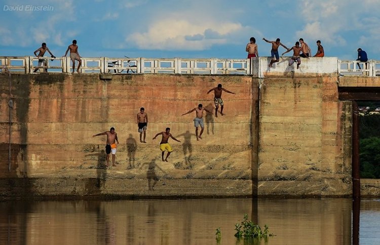 “Quando pequeno, assim que a barragem de quixeramobim enchia, me batia uma vontade danada de pular lá de cima, mas nunca tive coragem. outros meninos pulavam, eu ficava olhando das varandas, e a impressão que tinha era que muitos deles, de braços abertos antes de tocar às aguas, por vezes, quase paravam e também paravam o tempo, eram meninos beija-flores triunfando sobre as aguas, desafiando a própria gravidade.”