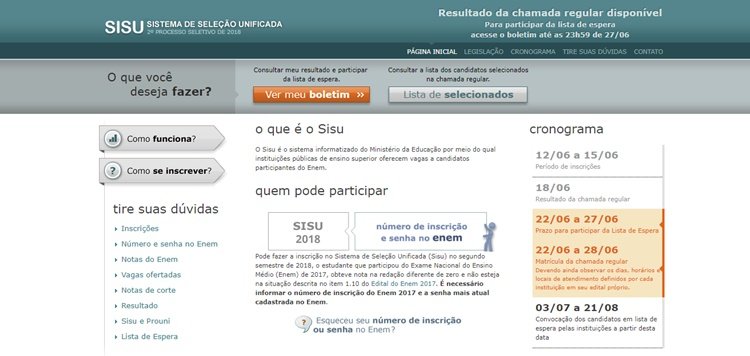 Aqueles que não foram selecionados poderão participar da lista de espera. O prazo para que isso seja feito começa também hoje e vai até o dia 27. A convocação dos candidatos em lista de espera será de 3 de julho a 21 de agosto. Para participar, basta acessar o sistema na internet e confirmar o interesse.