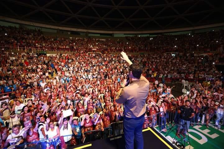 Centenas de fiéis lotaram o ginásio Paulo Sarasate, em Fortaleza, na tarde deste domingo, 01, no lançamento do livro “Combate Espiritual”, do Padre Reginaldo Manzotti.