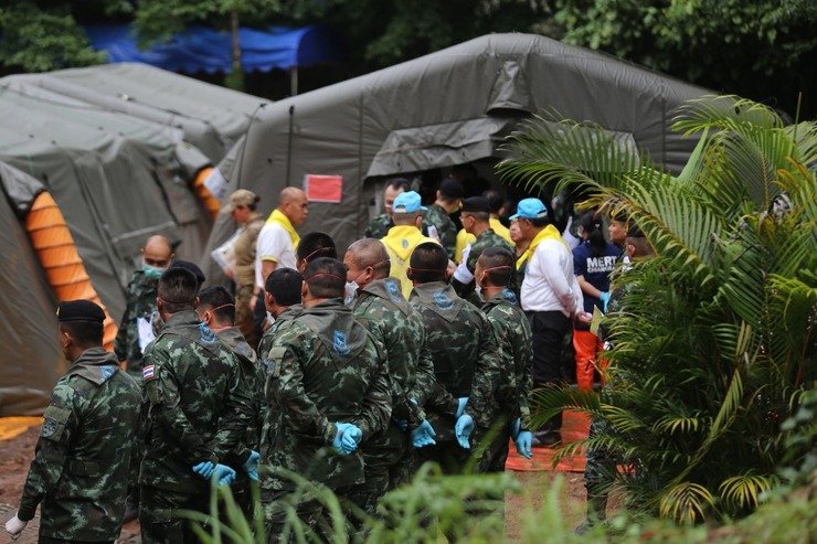 Narongsak Osatanakorn, governador da província de Chiang Rai, afirmou que existem 90 mergulhadores envolvidos na ação, 40 tailandeses e 50 estrangeiros. Helicópteros e ambulâncias esperam a saída dos garotos prontamente no entorno do local. Os quatro meninos que já foram salvos ontem estão em bom estado de saúde.