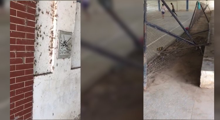 Desta vez, em um vídeo gravado, um internauta reivindicou a situação de descaso no Ginásio da Escola Luíza Távora, no Centro da cidade.