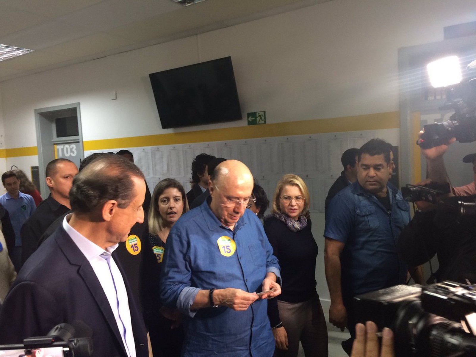 O candidato à Presidência da República pelo MDB, Henrique Meirelles, votou por volta das 9h40 da manhã, no Colégio Rio Branco, no bairro de Higiénópolis, região central da capital paulista. Ele estava acompanhado do candidato a governador do estado de São Paulo, Paulo Skaf. Depois de registrar seu voto na urna eletrônica, Meirelles fez o sinal de vitória e disse que isso representava a confiança no povo brasileiro e na democracia.