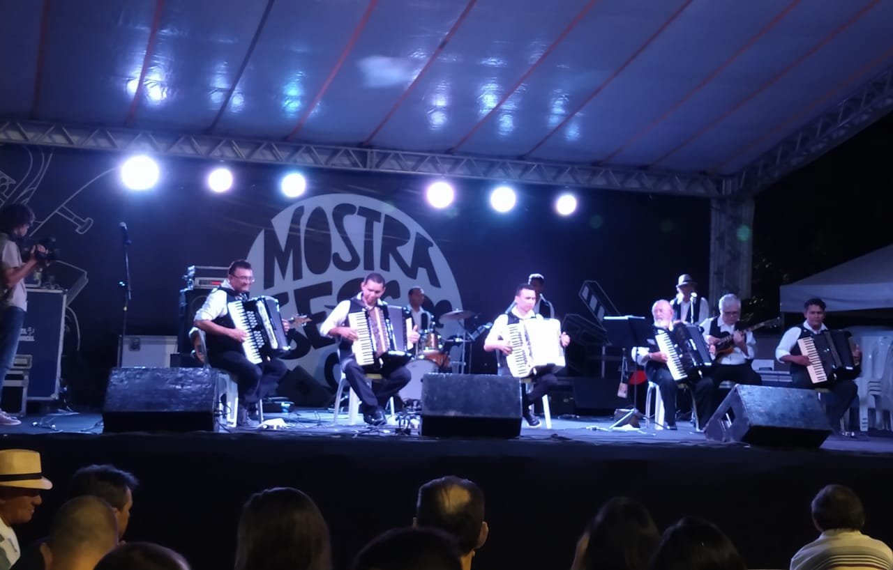 E pra fechar a noite com chave de ouro, acompanhamos a apresentação “Ritmos do Brasil”, da Orquestra Sanfonas do Ceará, em intercâmbio com os músicos locais.
