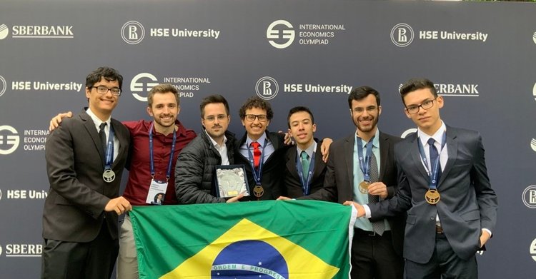 Criar estratégias para solucionar problemas financeiros, fazer um modelo de negócios, ampliar a área de atuação de uma empresa. As tarefas não eram voltadas para administradores, mas para estudantes que participaram da Olimpíada Internacional de Economia, no mês de julho, em São Petesburgo, na Rússia. Mesmo sem ter essa disciplina no currículo, dois estudantes brasileiros do ensino médio conseguiram trazer medalhas de ouro e bronze para o país. Com outros cinco membros na competição, o time brasileiro recebeu o Troféu de Melhor Equipe do Mundo.