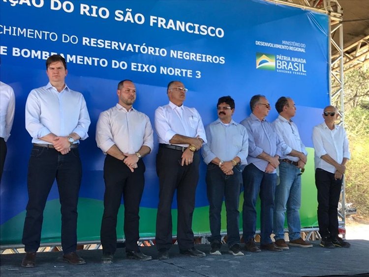 Após uma espera de décadas, finalmente o sonho da Transposição do Rio São Francisco está se tornando realidade, com a chegada das águas ao Ceará. Na tarde desta sexta, 30, na cidade de Salgueiro, em Pernambuco, a estação EBI-3, responsável por impulsionar a água para o território cearense, teve o seu bombeamento reacionado pelo ministro do Desenvolvimento Regional, Gustavo Canuto. “O Ceará será o maior beneficiado com essas águas. A gente sabe da necessidade do Ceará e por isso temos trabalhado. O presidente Jair Bolsonaro tem investido, apesar das dificuldades, e agora as águas vão chegar até Jati, e de lá seguir para o Cinturão das Águas, depois o Castanhão e toda a Região Metropolitana de Fortaleza. Eu não tenho dúvidas do esforço do Governo Federal, dessa nossa vontade que isso aconteça o mais rápido possível”, celebrou o ministro do desenvolvimento.
