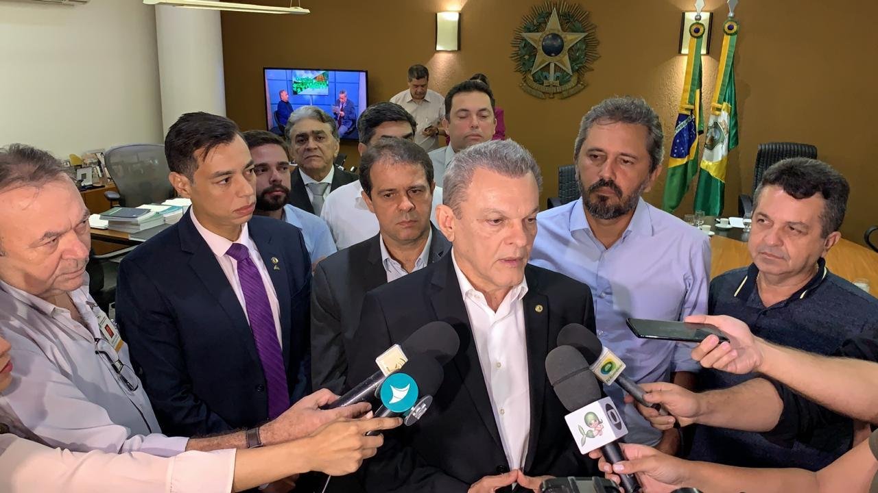 O deputado estadual Leonardo Araújo (MDB), presidente da Comissão de Defesa Social e representante do MDB, participa de reunião convocada pelo presidente da Assembleia Legislativa, José Sarto, para discutir, a mensagem que chegou à Casa, na noite de hoje, 28.