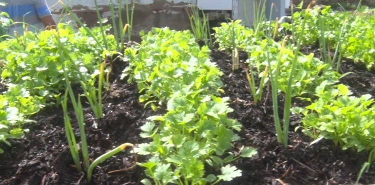 Na localidade de Fogareiro, sede do Distrito de Passagem, zona rural de Quixeramobim, moradores produzem em um canteiro, verduras e hortaliças para o consumo familiar.