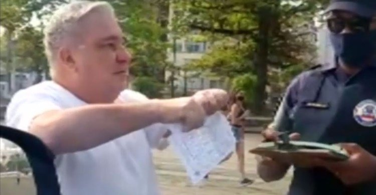Ele caminhou sem máscara em uma praia na cidade de Santos (SP) e foi autuado por um guarda municipal. Siqueira se recusou a receber a multa e a rasgou. A situação foi registrada em vídeo obtido pelo G1.
