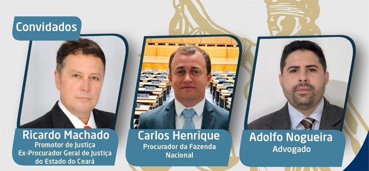 Com o tema “As perspectivas de atuação do profissional de Direito”, a live terá a participação do promotor de Justiça e ex-Procurador Geral do Estado do Ceará, Ricardo Machado, do Procurador da Fazenda Nacional, Carlos Henrique, e do advogado Adolfo Nogueira, com mediação do estudante de Direito, Matheus Ferreira.