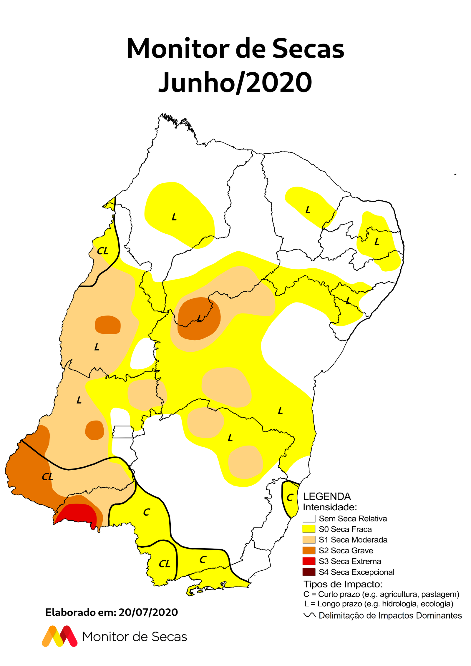 Segundo a Fundação Cearense de Meteorologia e Recursos Hídricos (Funceme), o Ceará teve acumulados que variaram entre 2 milímetros e 120 mm no mês de junho, sendo os maiores valores observados na região litorânea e nordeste do Estado. Os impactos da seca se mantêm apenas de longo prazo.