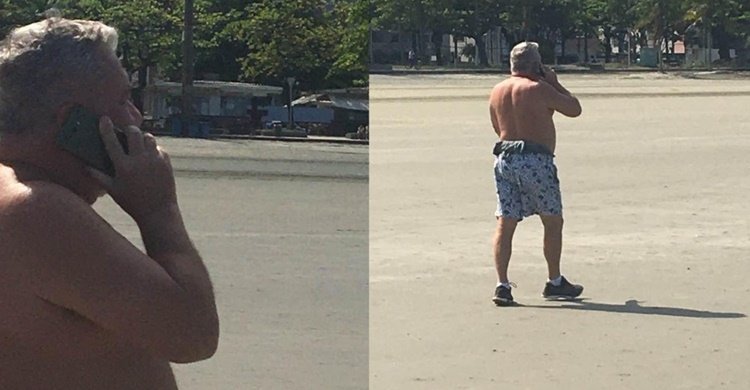 O registro foi feito na manhã dessa quarta-feira, 05, por uma moradora da cidade que prefere não se identificar. Ela relata que o desembargador estava caminhando pela faixa de areia, com a máscara no pescoço, enquanto falava ao celular, do Canal 4 até o Canal 5. A cena durou cerca de 20 minutos. “Passou a Rua General Rondon, avistou uma viatura da GCM, deu meia volta e colocou a máscara”, descreve.