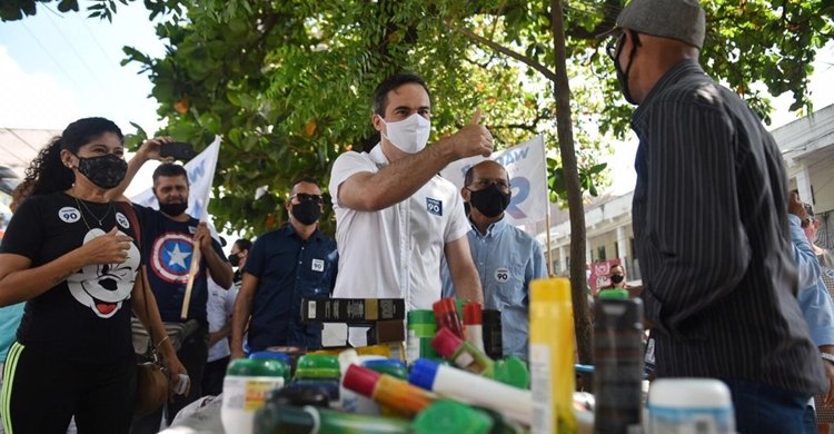 O candidato a prefeito de Fortaleza, Capitão Wagner, realizou, na manhã desta segunda-feira, 05, caminhada no principal corredor do bairro Vila Velha, na Avenida Mozart Pinheiro de Lucena, ao lado de candidatos ao cargo de vereador de partidos aliados e militantes.