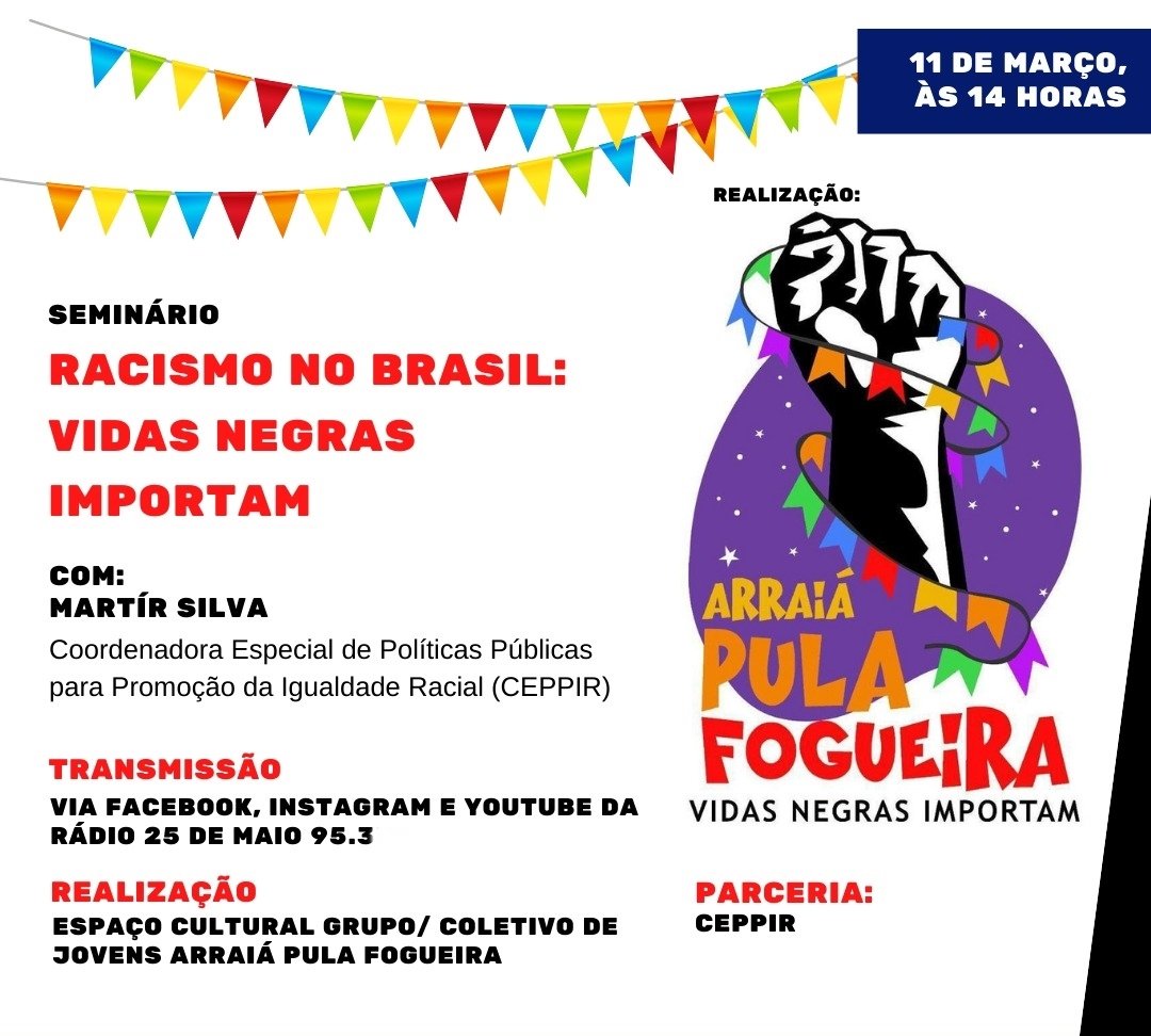 O Espaço Cultural Grupo/Coletivo de Jovens Arraiá Pula Fogueira, do Assentamento 25 de Maio, na localidade de Paus Brancos, em Madalena, promove no dia 11 de março, um seminário sobre racismo no Brasil.