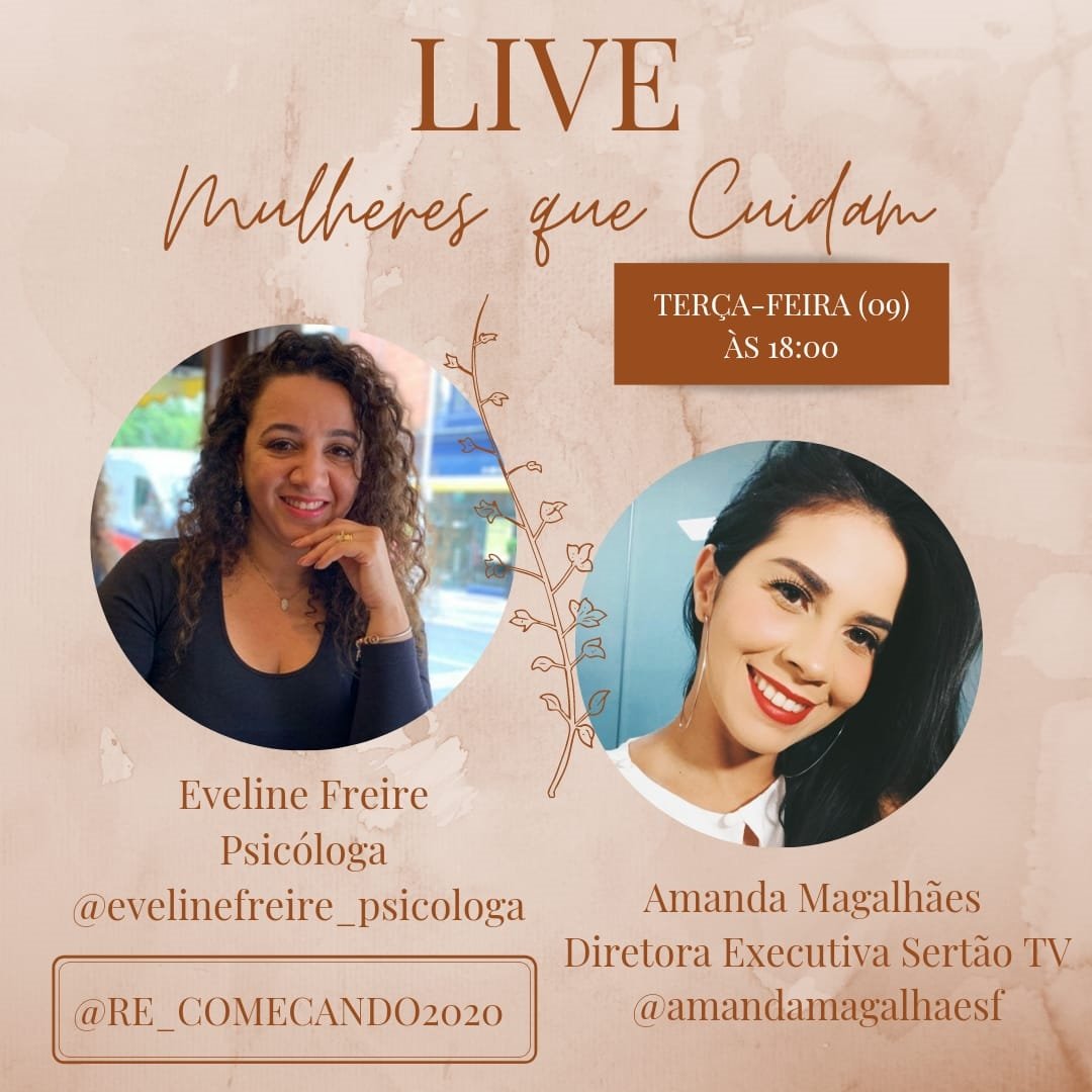 Com mediação da psicóloga Eveline Freire, idealizadora do projeto, a live contará com a participação da diretora executiva da SerTão TV, Amanda Magalhães, que abordará sua participação como mulher na construção e consolidação de uma emissora de televisão.