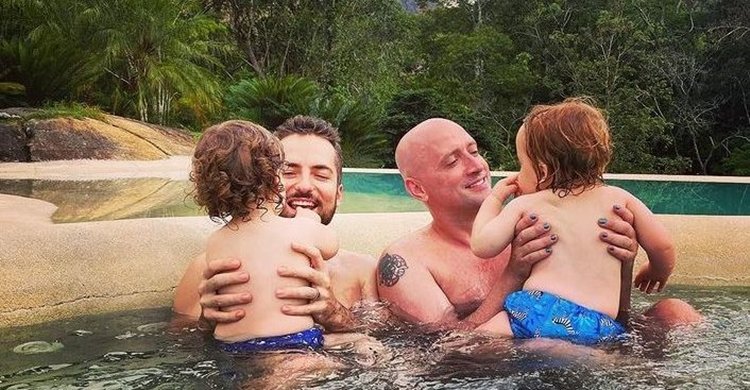 O artista, de 42 anos, é casado com o médico Thales Bretas, com quem tem dois bebês.