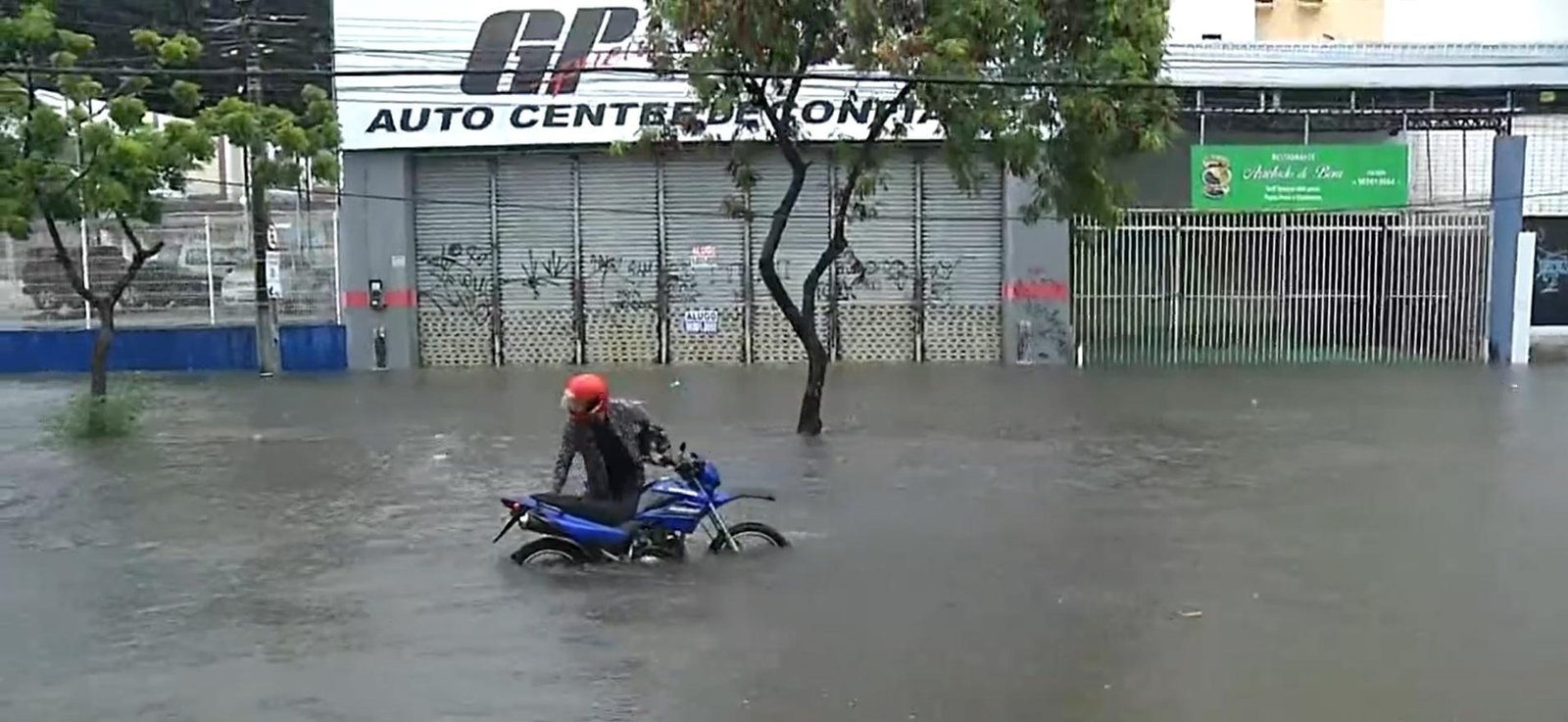 Veículos enfrentam dificuldade em trafegar por pontos tradicionais de alagamento, como a Avenida Heráclito Graça. Além disso, uma ambulância e dois carros chegaram a ficar presos no local, boiando, mas saíram da via com a ajuda de moradores.