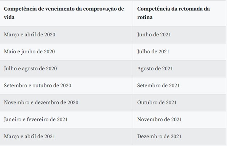 Para evitar aglomerações nas agências, o INSS elaborou um calendário. O cronograma começa em junho para quem deveria ter feito a prova de vida em março e abril de 2020. No mês seguinte, julho, para os beneficiários que deveriam ter feito a prova de vida em maio e junho. O calendário segue até dezembro com a prova de vida para quem deveria ter feito em março e abril de 2021.