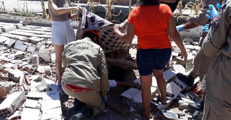 Na manhã desse domingo, 29, duas mulheres ficaram presas embaixo de escombros de um muro que desabou no município de Tauá, na região dos Inhamuns.