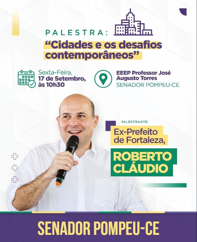 Roberto Cláudio, que é um dos nomes cotados como pré-candidato do PDT ao Governo do Estado, ministrará na cidade uma palestra sobre “Cidades e os desafios contemporâneos”.