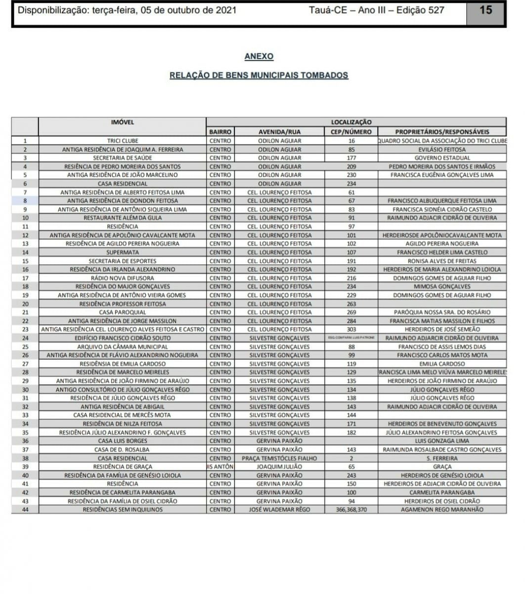 O Município de Tauá, na região dos Inhamuns, tombou prédios residenciais e comerciais situados no Centro Histórico-Cultural da cidade. A medida foi publicada no Diário Oficial do Município nessa terça-feira, 5.
