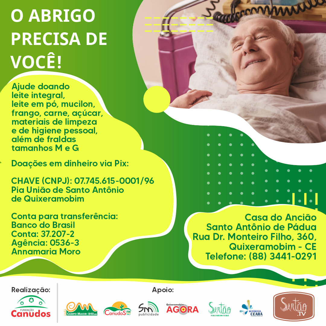 A Fundação Canudos, através dos veículos que compõem o Sistema Maior de Comunicação, lançou na última sexta-feira, 14, a campanha “O Abrigo precisa de você”, para estimular doações ao Abrigo Santo Antônio, de Quixeramobim.
