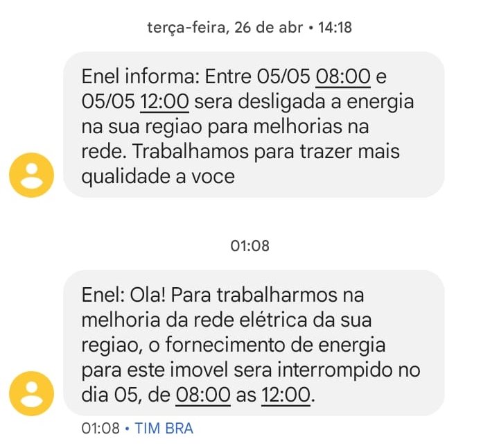 A empresa não detalhou que serviços serão realizados, apenas que a energia será suspensa.