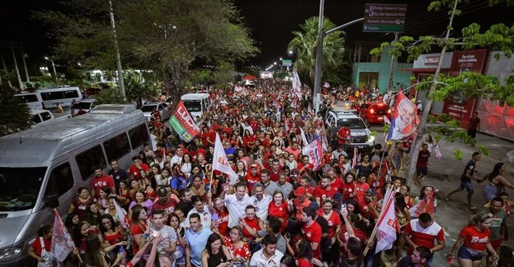 Ao lado do candidato ao Senado pelo PT, Camilo Santana, o postulante ao Governo do Ceará, Elmano de Freitas (PT), participou de comício e caminhada no fim da tarde desse domingo, 25, em Granja.