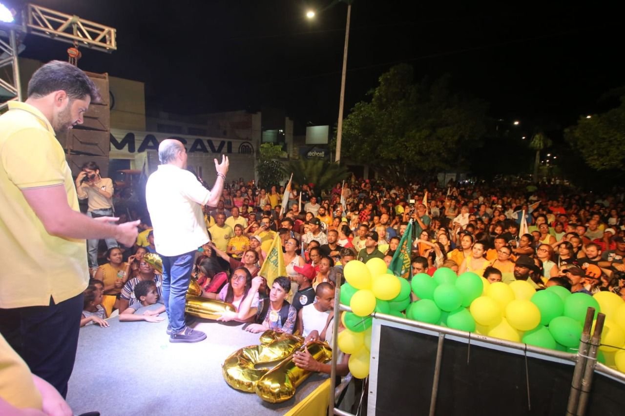 O candidato ao Governo do Ceará, Roberto Cláudio (PDT), participou, na noite desse domingo, 25, de encontro com militantes e apoiadores políticos, no município de Brejo Santo, na Região do Cariri. O pedetista, ao lado do seu vice, Domingos Filho (PSD), e da prefeita de Brejo Santo, Gislaine Landim (PDT), percorreu ruas e avenidas da cidade, iniciando o percurso em frente ao Estádio Municipal Geraldão e terminando na Praça Dionísio Rocha Lucena, no Centro.