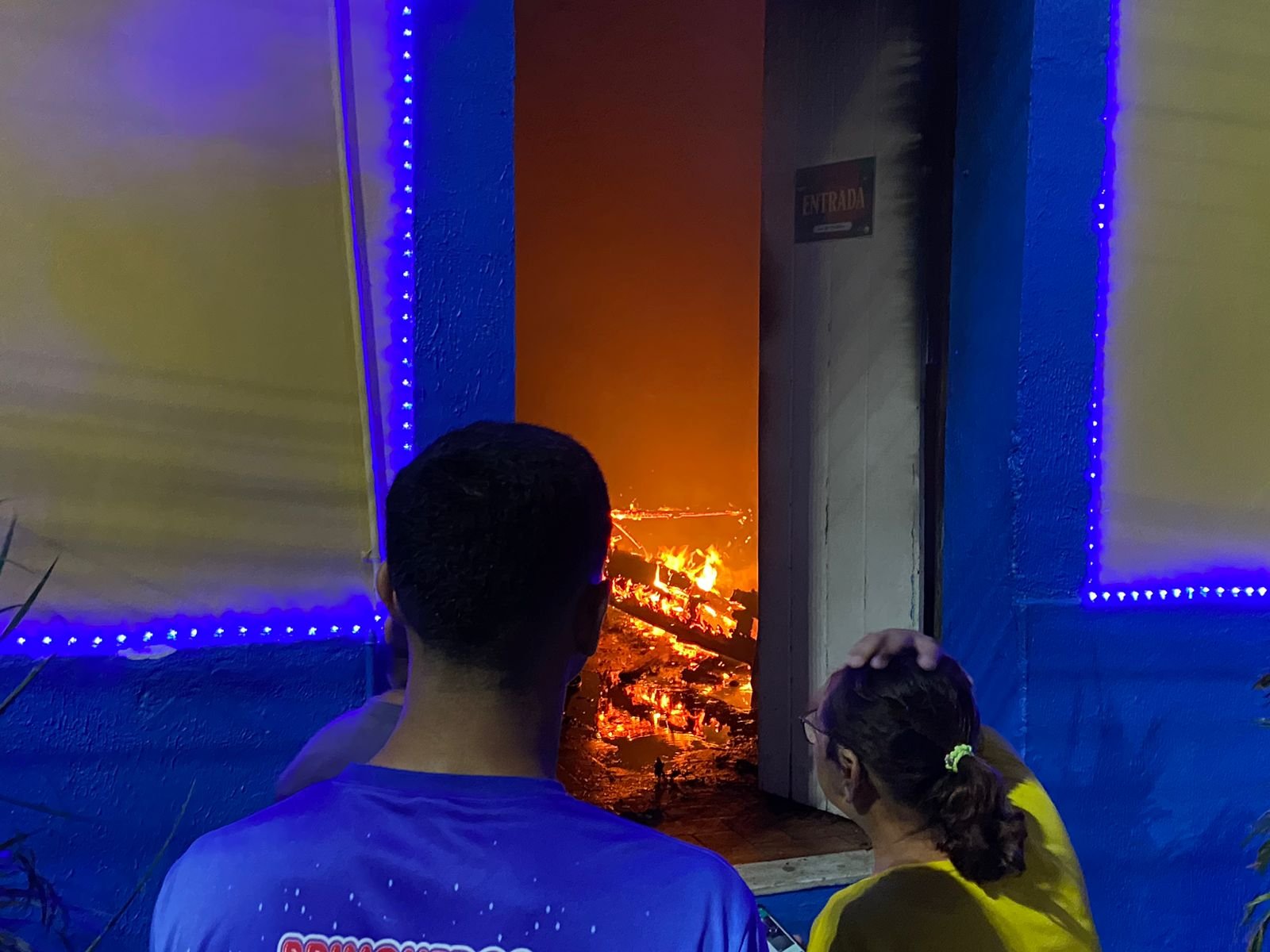 Os populares que perceberam o incêndio quebraram a porta de acesso ao salão e utilizaram baldes com água para diminuir a intensidade das chamas até a chegada do Corpo de Bombeiros.
