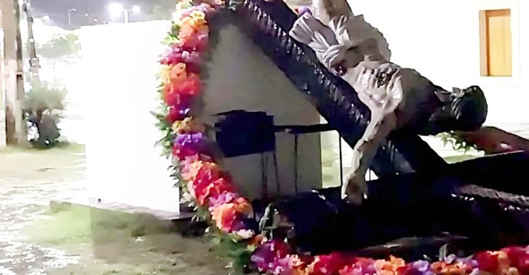 A estátua do Cristo crucificado, em Icó, caiu na noite dessa terça-feira, 17, após uma forte chuva acompanhada de ventos, de acordo com moradores locais.