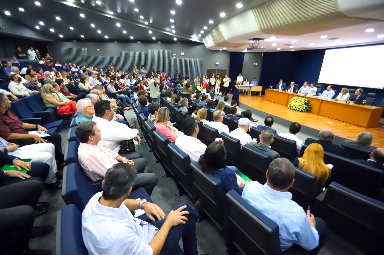 Após o discurso de boas-vindas, foi exibido um vídeo institucional da Assembleia Legislativa apresentando seus principais núcleos, setores e serviços disponíveis para parlamentares, servidores e população.
