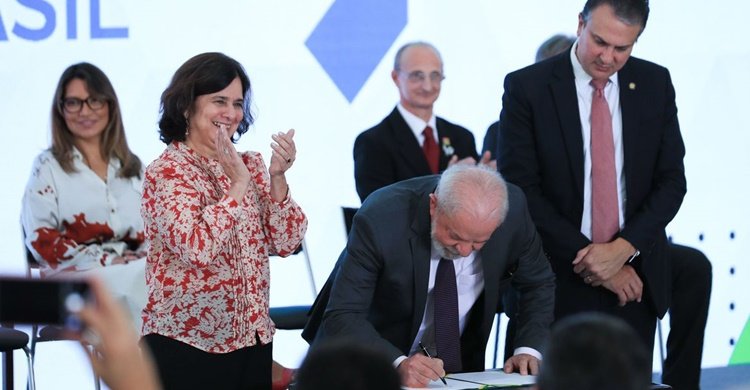 Brasília (DF) 20/03/2023 Presidente da República, Luiz Inácio Lula da Silva, e a ministra da Saúde, Nísia Trindade, durante solenidade que anunciou a retomada do programa Mais Médicos para o Brasil.