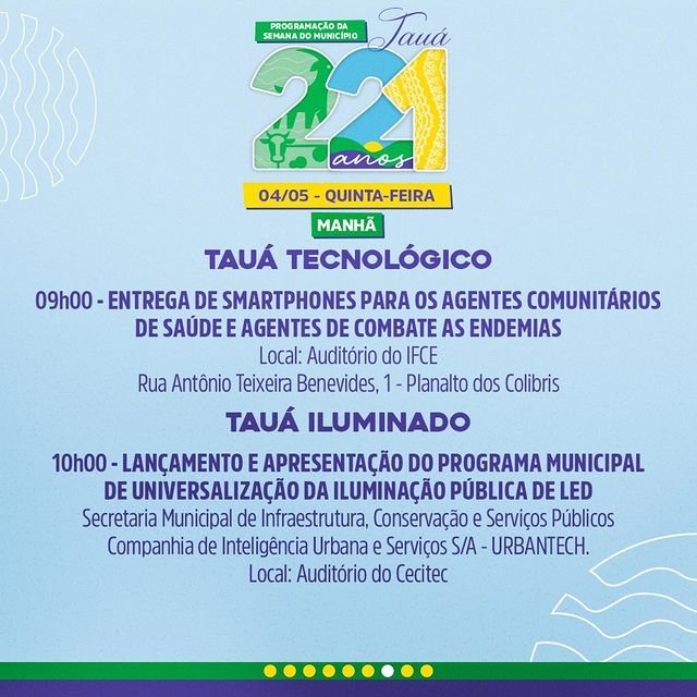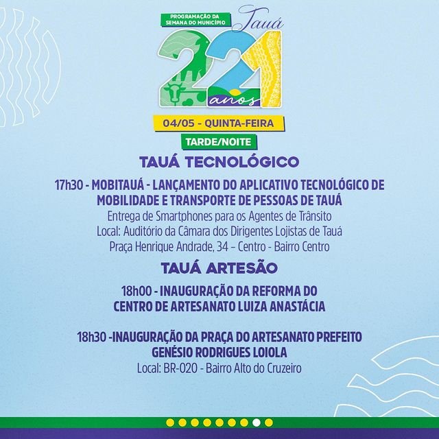 “Neste dia tão especial, celebramos a história e a trajetória de sucesso deste município que tem muito a oferecer. Parabéns ao tauaenses, que fazem desta terra um lugar tão especial”.
