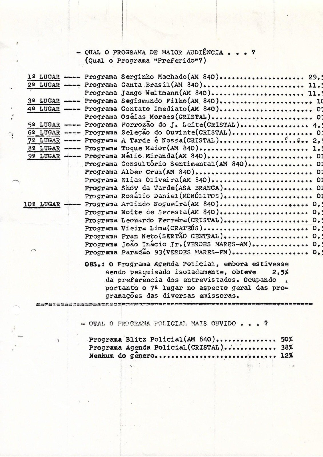 Desde o início, a Rádio Campo Maior foi líder de audiência, e o programa Serginho Machado era o que despontava nas pesquisas.