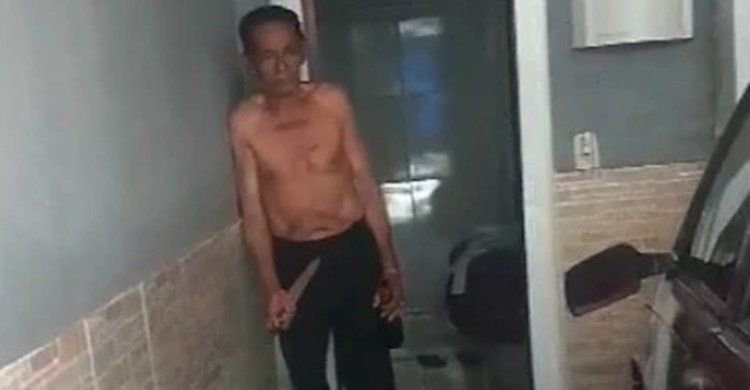 Ao chegar ao local, na rua Padre José Maria Sousa, Bairro Arianópolis, a Polícia encontrou o homem bêbado e com uma faca do tipo “peixeira” na mão.