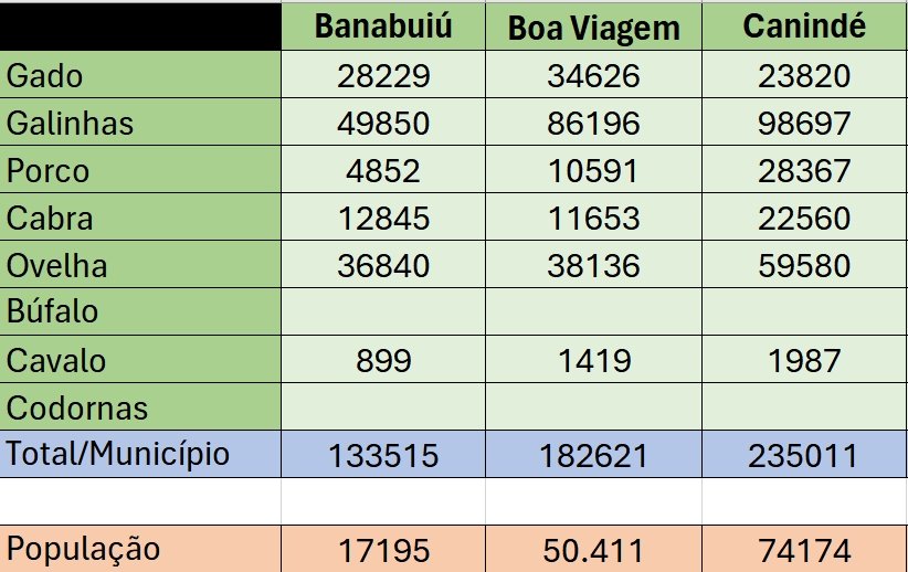 Conforme o levantamento, o Ceará possui mais de 44,5 milhões de animais de criação, sendo gado, galinha, porco, cabra, ovelha, búfalo, cavalo e codornas.