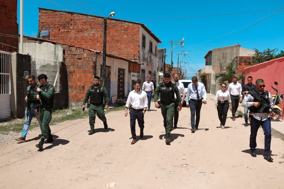 Na manhã desta segunda-feira, 08, o secretário da SSPDS, Samuel Elânio; o secretário executivo de ações integradas e estratégicas da SSPDS, Sérgio Pereira; o comandante-geral da PMCE, coronel Klenyo Sávio; a delegada geral adjunta da Polícia Civil do Estado do Ceará (PCCE), Teresa Cruz; além dos delegados Nelson Pimentel, Harley Filho, Ricardo Pinheiro, da Coordenadoria de Inteligência (Coin-SSPDS), da Coordenadoria Integrada de Planejamento Operacional (Copol-SSPDS), e do Departamento de Homicídios e Proteção à Pessoa (DHPP), respectivamente, estiveram na região para acompanhar os trabalhos policiais.