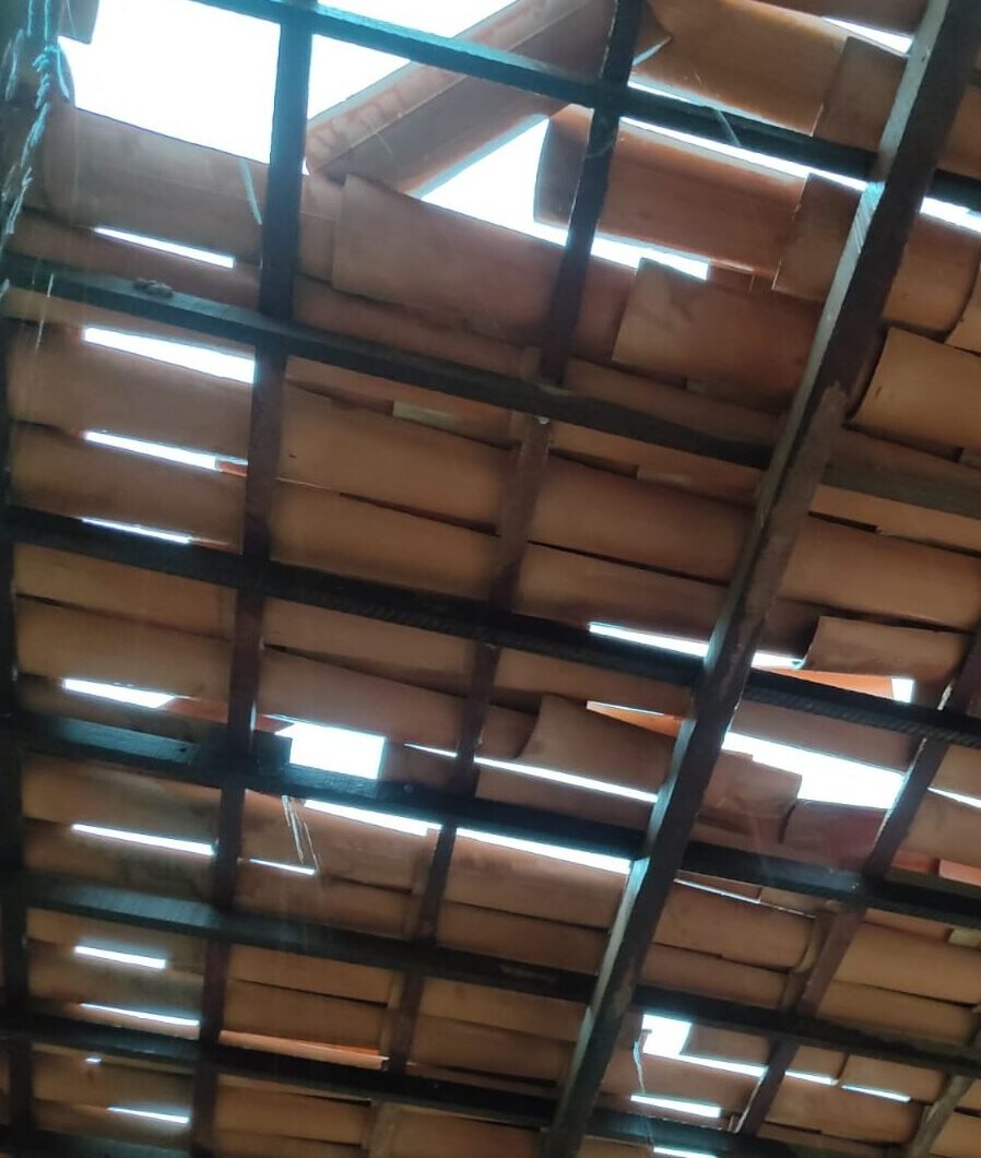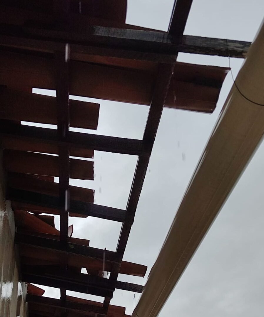 Em imagens enviadas ao RC por Ari, é possível ver que parte da cobertura do ginásio poliesportiva foi arrancada, além dos telhados de várias casas terem sido danificados.