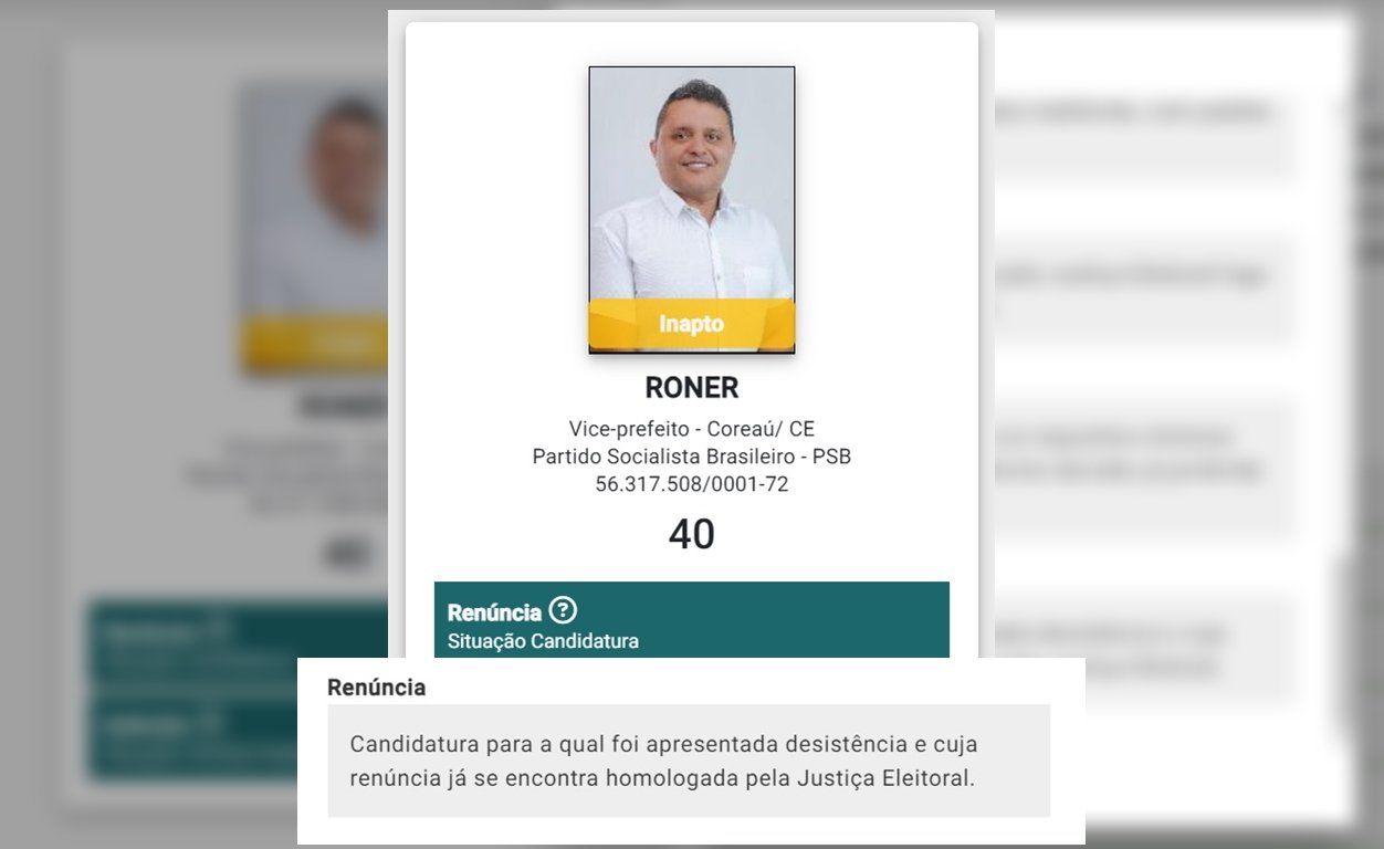 Nessa quinta-feira, 5, a Justiça Eleitoral indeferiu o registro da candidatura de Carlos Roner Félix Albuquerque, o Roner (PSB), ao cargo de vice-prefeito em Coreaú pelo Partido Socialista Brasileiro (PSB). Na ação, a Promotoria da 64ª Zona Eleitoral argumentou que o candidato não atende às condições legais para concorrer ao cargo, pois teve as contas públicas desaprovadas pelo Tribunal de Contas do Estado do Ceará (TCE/CE) quando exerceu o cargo de prefeito no município.