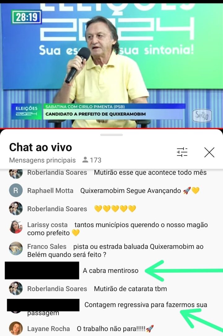 Uma das ameaças foi feita durante transmissão da sabatina do candidato, no canal do YouTube da SerTão TV, emissora do Sistema Maior de Comunicação, nessa terça-feira. O comentário, na ocasião, foi: “Contagem regressiva para fazermos sua passagem”.